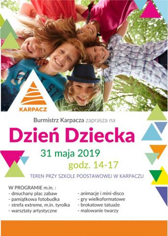 Zapraszamy na miejski Dzień Dziecka, który odbędzie się 31 maja, w godz. od 13 do 16, na terenie Szkoły Podstawowej w Karpaczu.